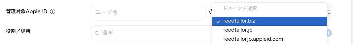(管理対象AppleIDのドメイン名部分はリストボックスから選ぶ)