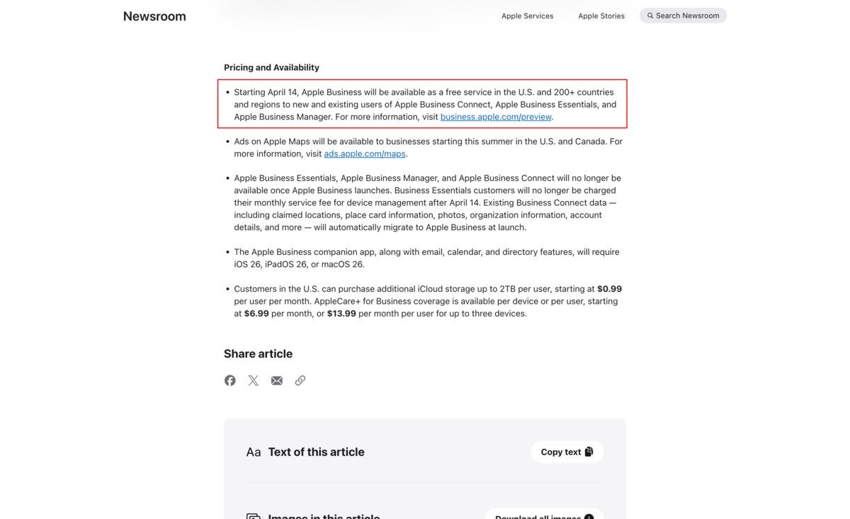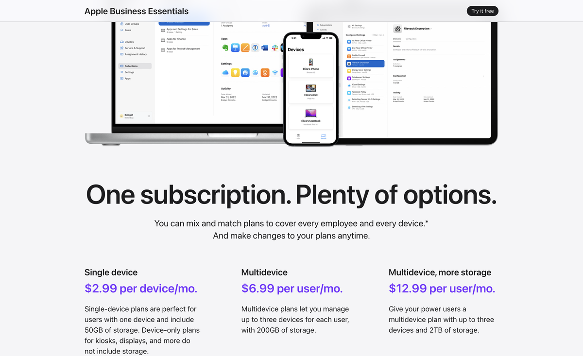 その代替という位置付けだったのか、あるいは今回の Apple Business への布石だったのか、macOS Server 終了前の 2021年11月に Apple Business Essential がベータ版で発表されました。これが2つ目の例外。