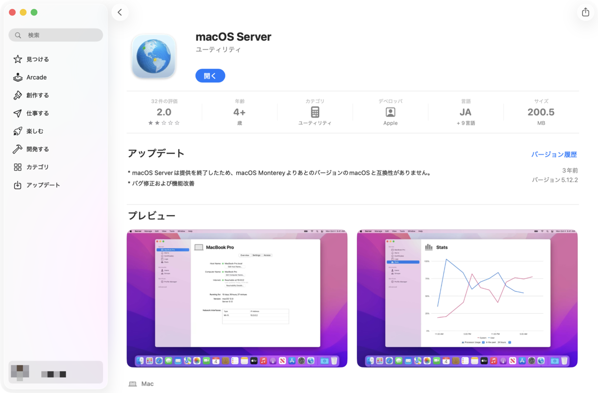 前者の macOS Server は、macOS (古くはOSX) で動作するサーバプログラム群ともいうべきmacOS 用の有償アプリケーション(¥2,000)。