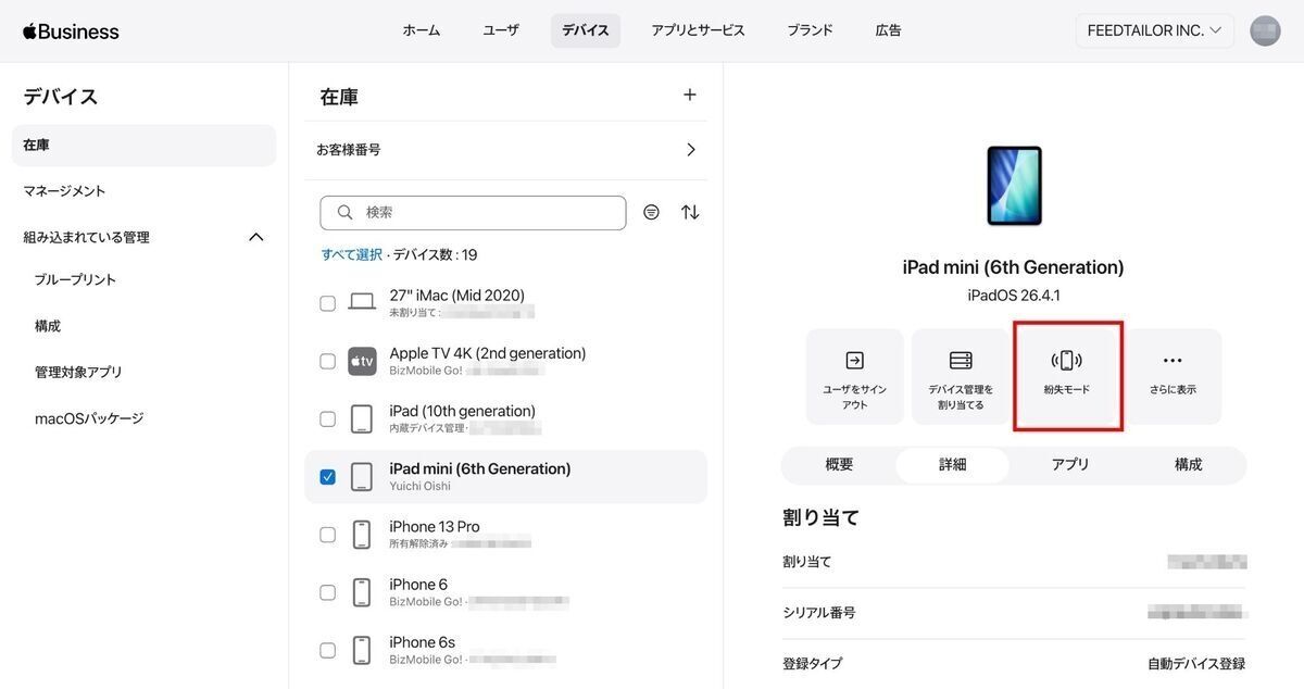 もちろん、Apple Business に遠隔で初期化する機能が備わってます。