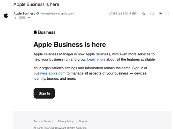前回の投稿で紹介した Apple Business が予定通り2026年4月14日にリリースされました。